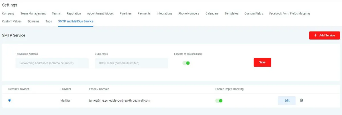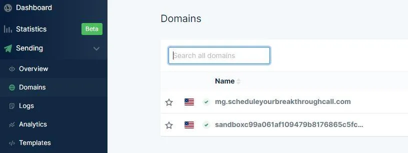 4-Input the settings you'd see from mailgun SMTP settings tab