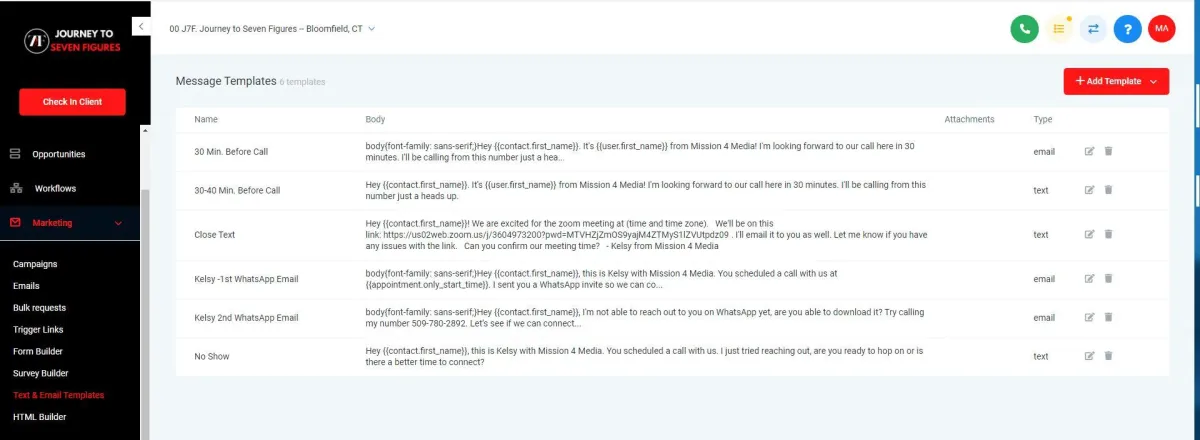 1- Go to Email & Text Templates under Marketing Menu in GHL